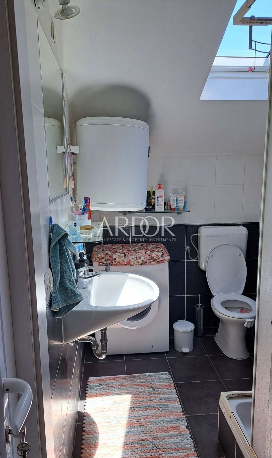 On the island of Pag, in the town of Novalja, an apartment is for sale located in the high attic of a residential building (3rd floor), with a total usable area of 50.11 m².