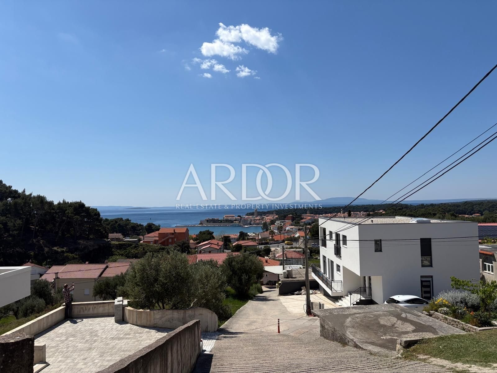 In vendita un moderno appartamento di nuova costruzione situato in una zona tranquilla dell’insediamento di Banjol sull’isola di Rab. L’appartamento ha una superficie totale di 65 m² ed è composto da due camere da letto, un soggiorno con cucina e zona pranzo, un bagno e un balcone con una splendida vista sul centro storico di Rab.
