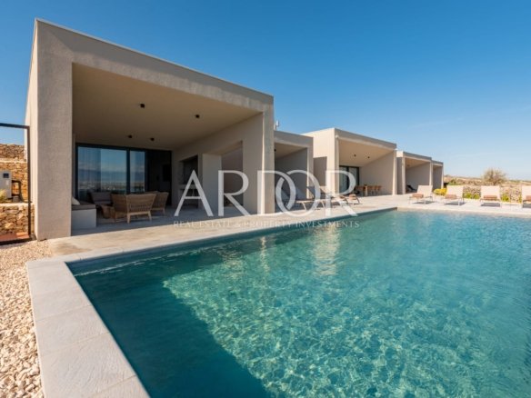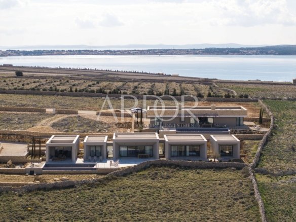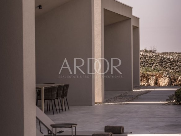 Otok Pag – Posredujemo pri prodaji sodobnega minimalističnega resorta s petimi edinstvenimi vilami na jugozahodni obali otoka Pag, v naravnem okolju, le 160 metrov od morja in peščene plaže.
