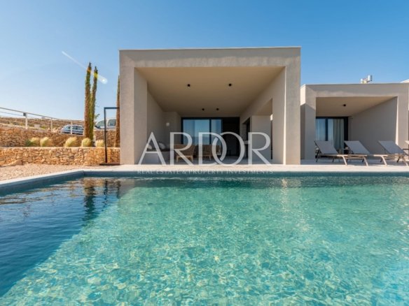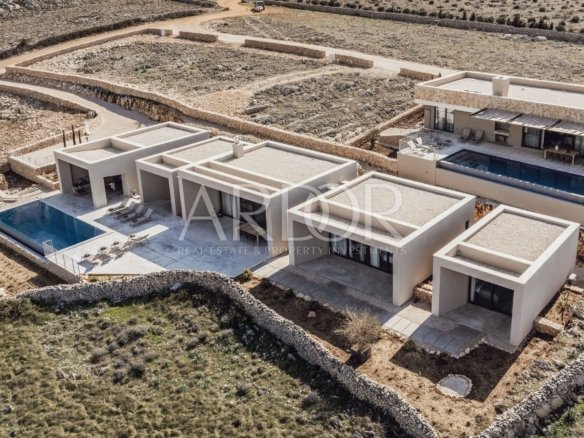 Pag Island – We are mediating the sale of a modern, minimalist resort featuring five unique villas on the southwest coast of Pag Island, set in a natural landscape just 160 meters from the sea and a sandy beach.