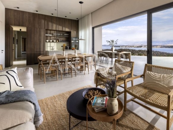 Popolno okolje za uživanje v enonadstropni vili z prostorno dnevno sobo s kaminom, štirimi spalnicami po 25 m², 40 m² veliko dnevno/sprostitveno sobo in veliko teraso z ogrevanim 40 m² neskončnim bazenom s pogledom na zaliv in gore.