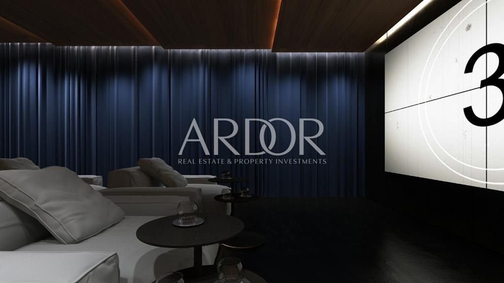 Kuća se prostire na tri etaže gdje se direktno od ulaza prilazi dnevnom boravku, kuhinji, kupatilu i izlazi u dvorište. Etaže su povezane spiralnim stepenicama te vode na gornji kat gdje se nalaze četiri sobe, kupatilo, wc te velika terasa s prekrasnim pogledom, a u prizemlje u kino sobu, spa zonu i svojevrsnu ostavu.