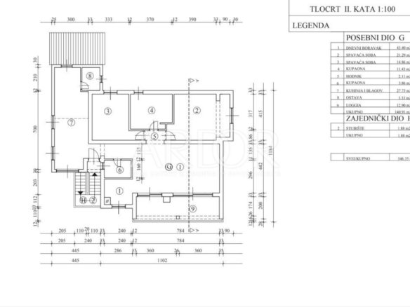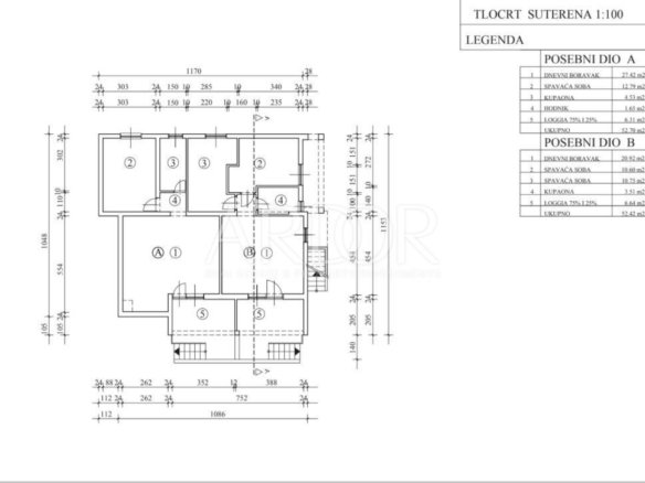 m2 and the land plot of 1.160 m2. On the ground floor there is an entrance area, an anteroom, a