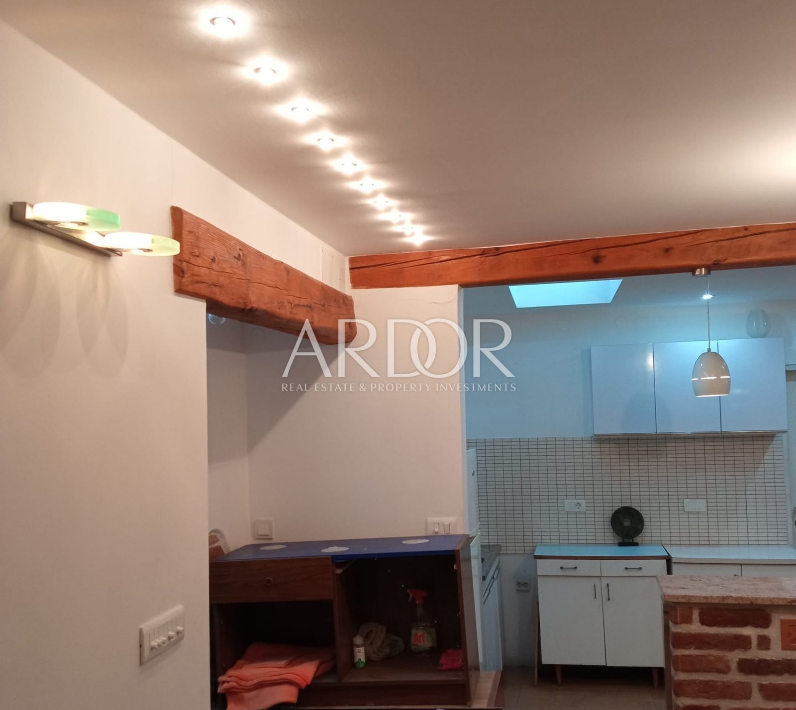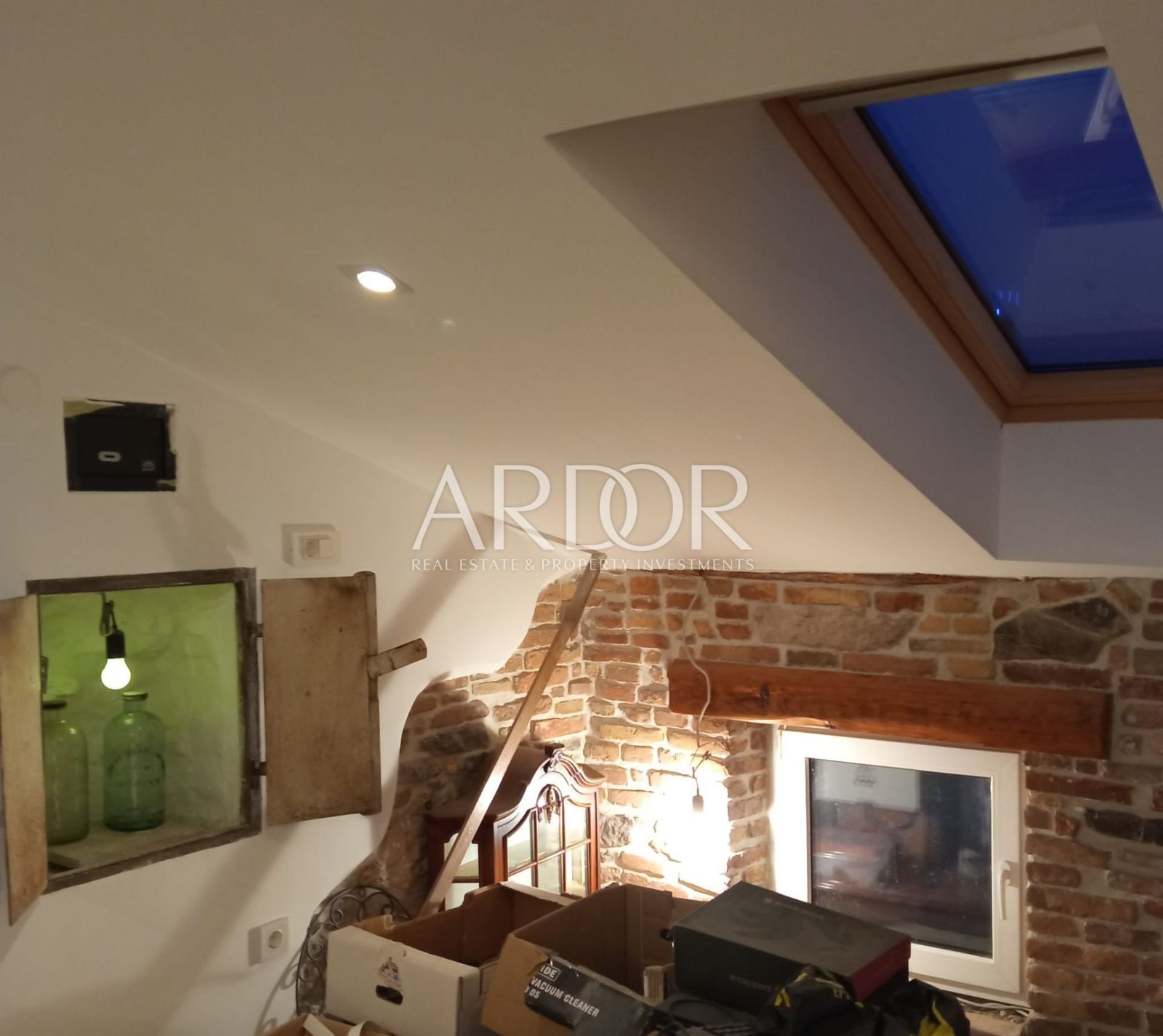 The apartment offers approximately 112 m² of usable living space and stands out for its exceptional amount of natural light — a total of 17 windows (3 side windows, 7 smaller windows, and 7 roof windows), with the possibility of installing additional ones, making the space unusually open and extremely pleasant to live in. It is currently designed as a single residential unit; however, during the initiated renovation, the option of creating two completely separate residential units was planned, with installations already prepared for two kitchens and two bathrooms.