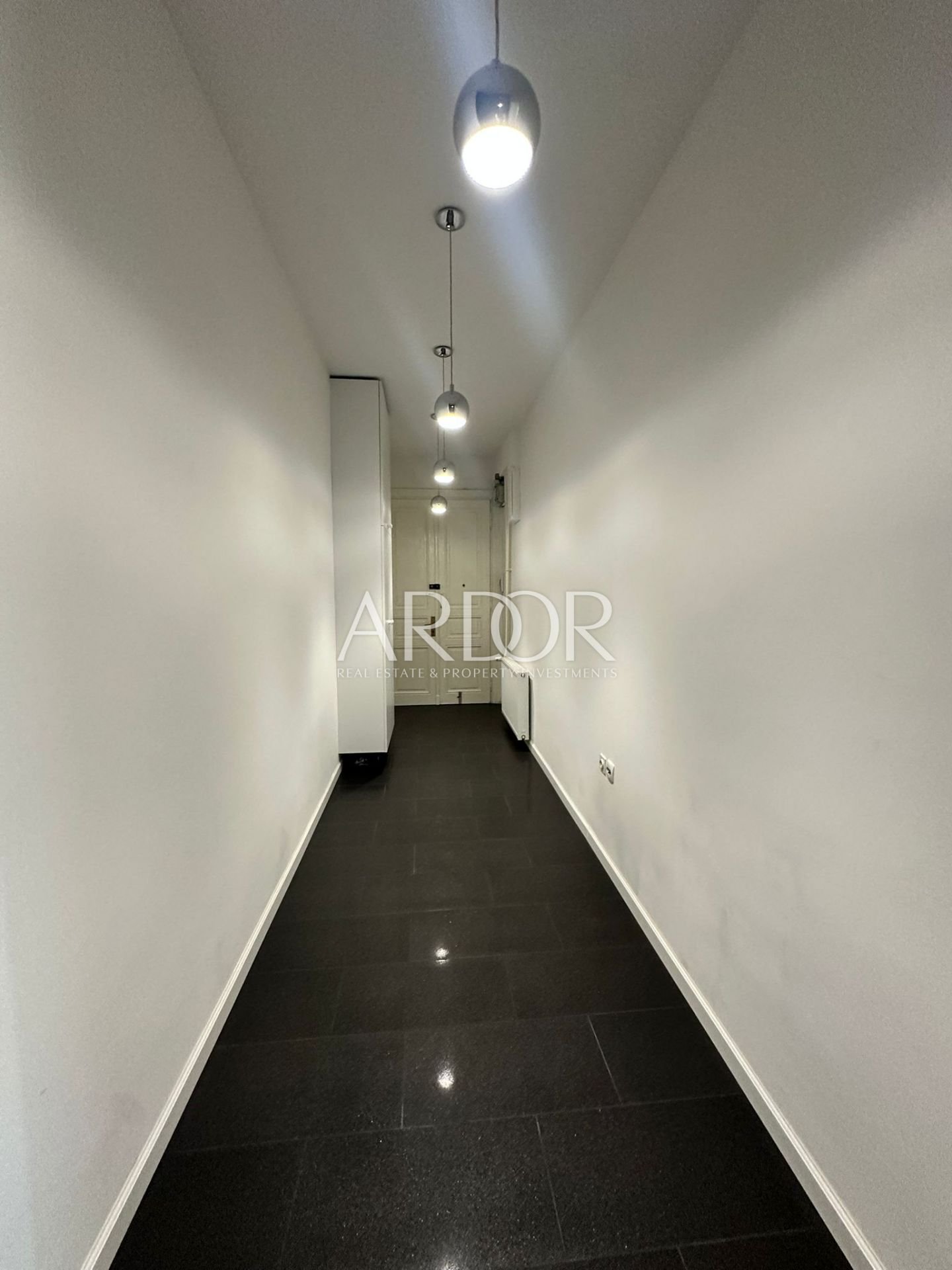 Smješten na polukatu zgrade s vrlo malo stepenica, ovaj lijepi stan, što ga čini pogodnim ne samo za svakodnevni život već i za razne poslovne djelatnosti poput ordinacija, savjetovališta ili uredskih prostora. Adaptacija provedena prije nekoliko godina obuhvatila je kompletnu obnovu instalacija, ugradnju nove stolarije i podnih obloga te organizaciju dva zasebna sustava etažnog grijanja na struju. Uvedena je i trofazna struja, što dodatno proširuje mogućnosti korištenja prostora u vidu poslovnog prostora. Kuhinje i kupaonice opremljene su namještajem koji ostaje budućem vlasniku.