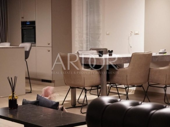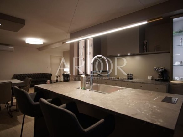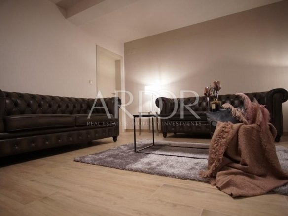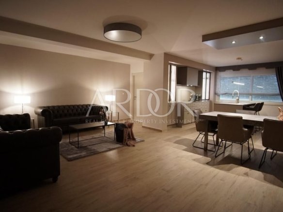 Stan je kompletno renoviran 2021. godine. Opremljen je pomno biranim vrhunskim namještajem.