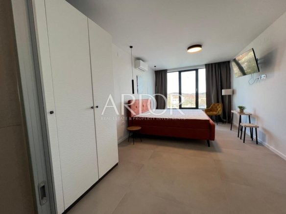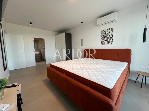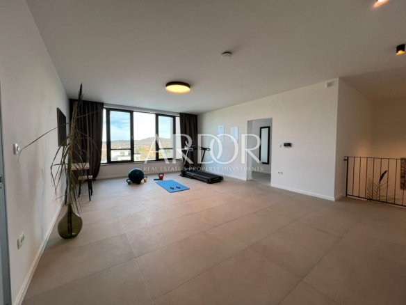 Na katu su smještene dvije luksuzne spavaće sobe, svaka s privatnom kupaonicom, osiguravajući maksimalnu udobnost. Dodatni prostor na katu trenutno se koristi kao prostorija za vježbanje, ali se lako može prilagoditi prema željama budućih vlasnika.