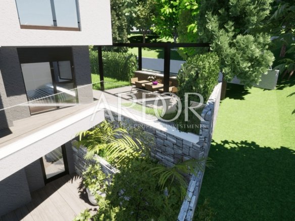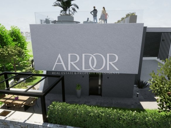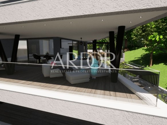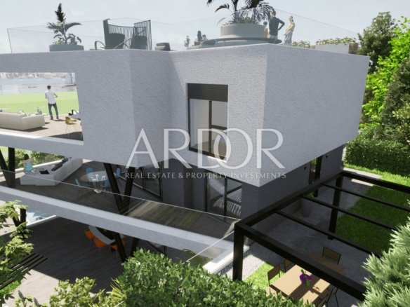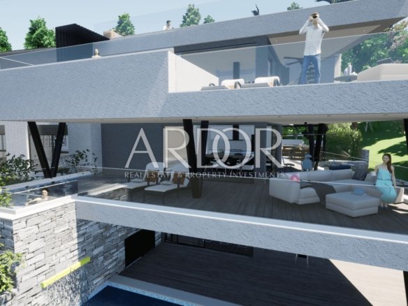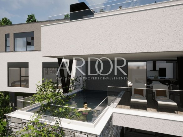 Smješten unutar moderne vile s ukupno tri luksuzna stana, svaki s vlastitim bazenom i zasebnom etažom, ova nekretnina pruža visoku razinu privatnosti i sofisticiran životni stil.