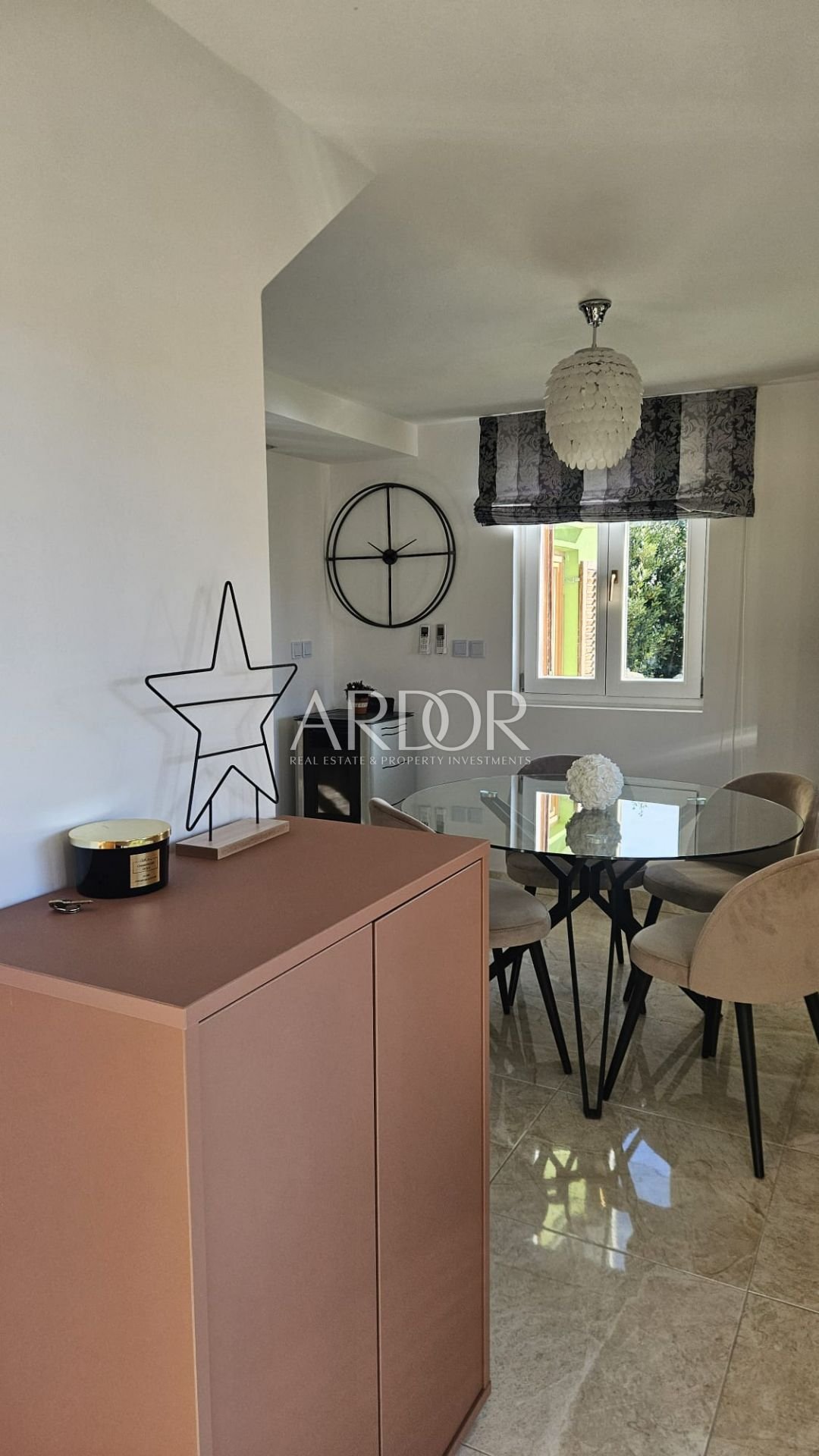 È stato completamente ristrutturato nel 2025, comprensivo di nuovo tetto e isolamento termico in polistirene, ed è completamente arredato e dotato di mobili e elettrodomestici di alta qualità. L’appartamento dispone di un balcone. L’immobile è frazionato e con documentazione regolare; il parcheggio pubblico si trova a circa 200 metri di distanza. La posizione tranquilla, la distribuzione funzionale e lo stato nuovo rendono questo appartamento un’ottima opportunità sul mercato immobiliare di Mali Lošinj.