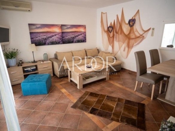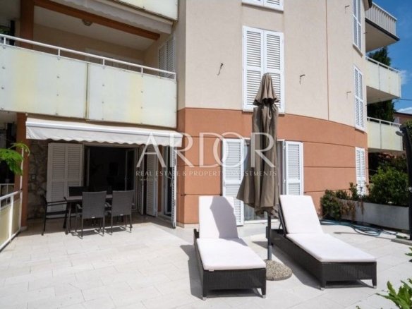 Novi Vinodolski – prodaje se apartman neto površine 48 m² s terasom od 44 m² i zelenom površinom od 29 m² u dvorištu. Dvorištu se može pristupiti s gornje strane i donje strane. Apartman je potpuno opremljen namještajem, ima električni bojler za grijanje vode, podno grijanje, klima uređaj, a sva brojila su odvojena. Udaljenost do plaže je svega 50 metara.