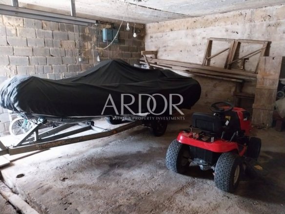 Prizemlje kuće, površine 136 m², trenutačno služi kao garaža i radni prostor, s velikim potencijalom za prenamjenu u radionicu, konobu ili dodatni stambeni apartman. Na katu, također površine 136 m², nalaze se četiri spavaće sobe, dnevni boravak, kuhinja, ostava, kupaonica i zaseban WC. Kuća ima novu PVC stolariju i promijenjen krov, dok je okućnica uređena i pogodna za različite namjene – od obiteljskog života do turističkog iznajmljivanja.