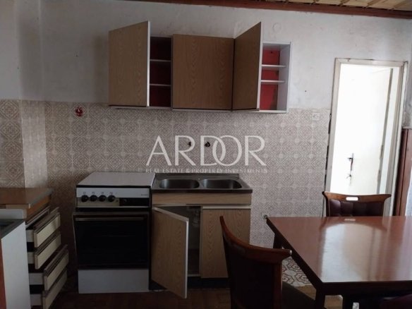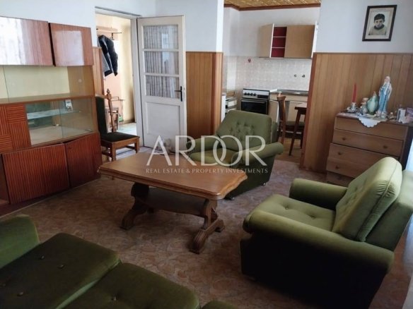 Das Erdgeschoss (136 m²) dient derzeit als Garage und Werkstatt und bietet großes Potenzial für den Umbau in eine Werkstatt, Taverne oder eine zusätzliche Wohneinheit. Im Obergeschoss (ebenfalls 136 m²) befinden sich vier Schlafzimmer, ein Wohnzimmer, eine Küche, eine Speisekammer, ein Badezimmer und ein separates WC. Das Haus verfügt über neue PVC-Fenster und ein erneuertes Dach, der Garten ist gepflegt und vielseitig nutzbar – ideal für Familienleben oder touristische Vermietung.