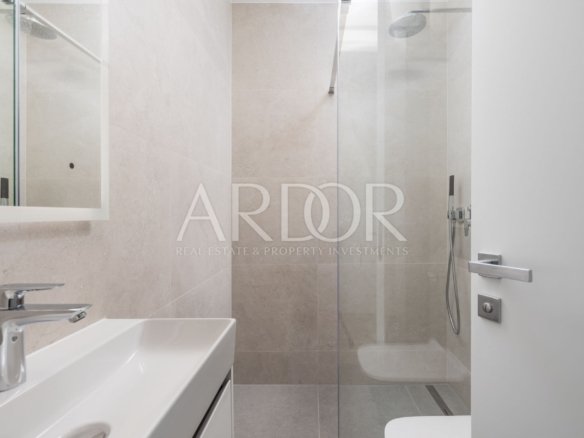 This luxurious apartment, located on the first floor of a new building, offers a spectacular view of the sea and the historic center of Opatija. With a balcony and a shared pool, the property offers a premium lifestyle, perfectly blending comfort and elegance.