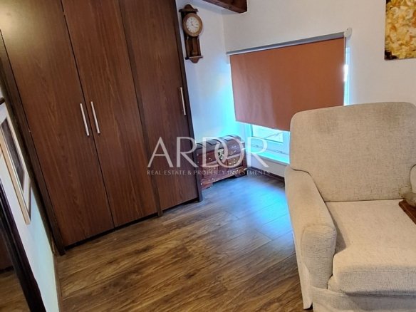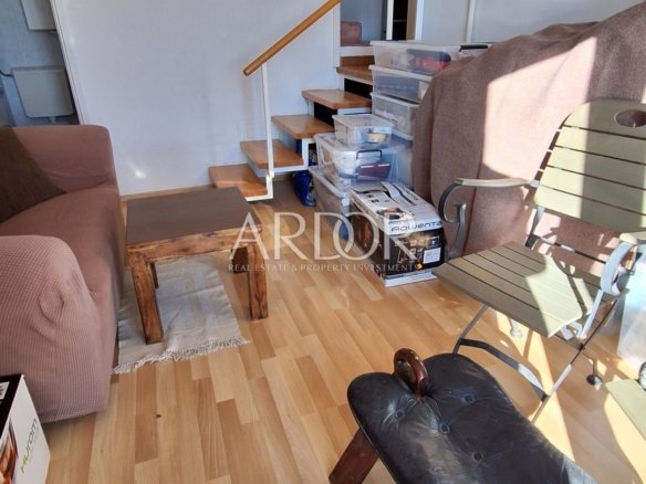 V prvem delu stanovanja je dnevna soba in kopalnica, drugi del, ki se nahaja v mansardi pa obsega dnevno sobo, kuhinjo, spalnico in še eno kopalnico.