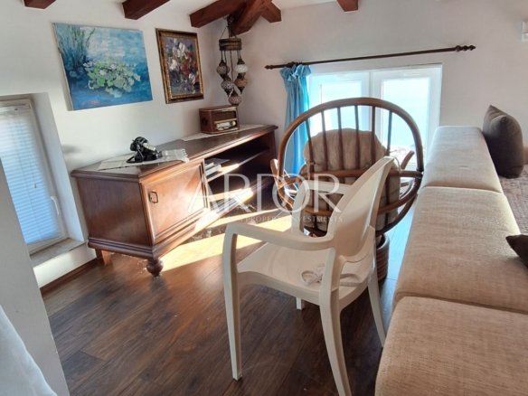 V prvem delu stanovanja je dnevna soba in kopalnica, v drugem delu, v mansardi, pa dnevna soba, kuhinja, spalnica in kopalnica.