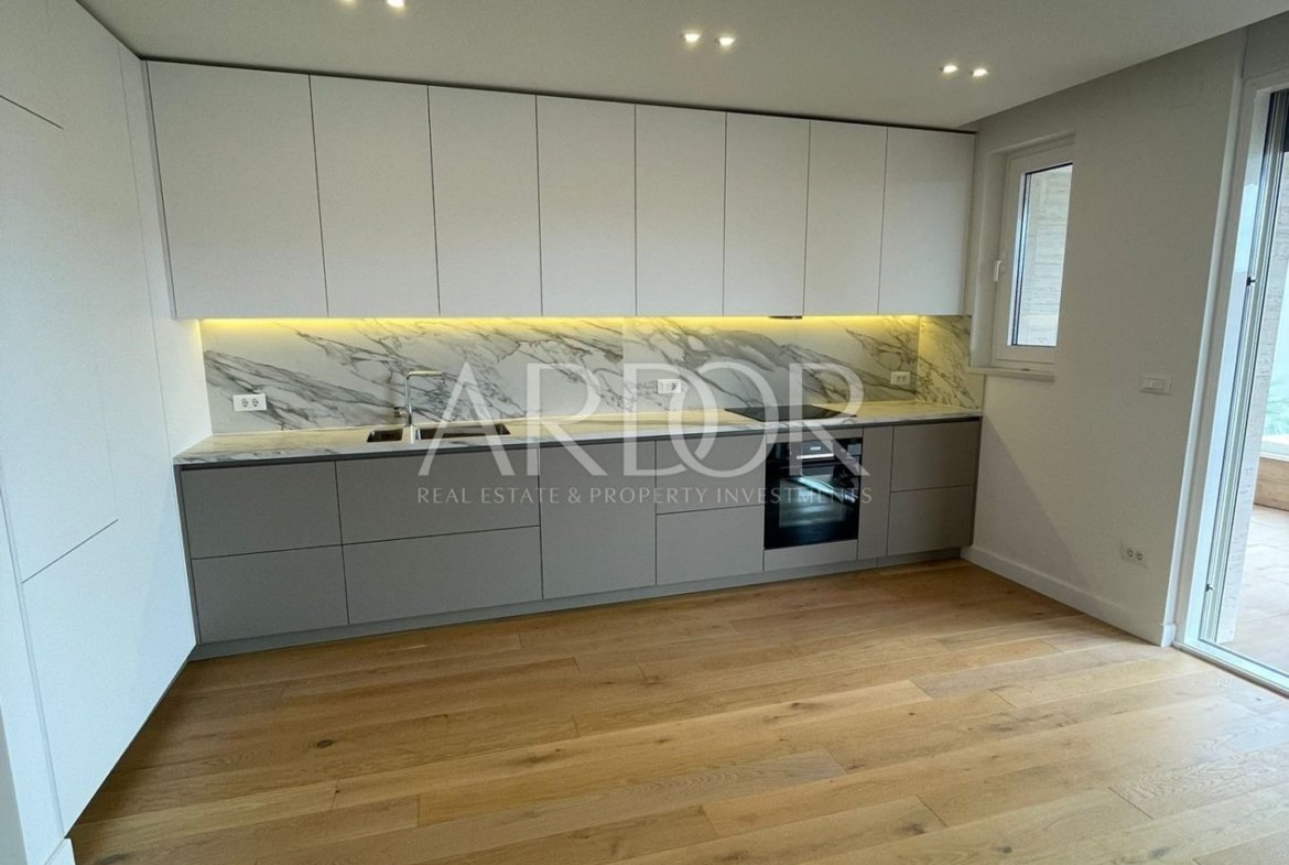 A quality and modern new building with an open sea view is located in a quiet part of Opatija, but at the same time close to all amenities, just 5 minutes from the beaches and the center. Very elegant design and concept of the building with modern organization and arrangement of apartments. Thanks to the large glass surfaces, all apartments are full of light. The apartments are equipped with remote-controlled fan coils with heating/cooling function in each room (heat pumps), solar collectors for hot water preparation, a combination of natural and mechanical ventilation, and underfloor heating in the kitchen and bathrooms.