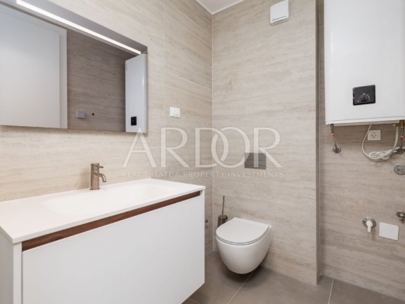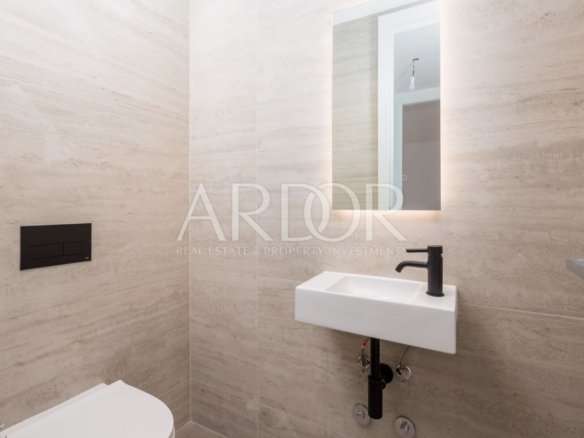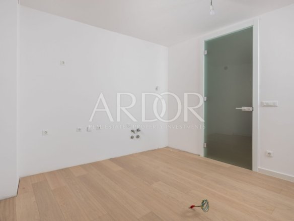 Ta luksuzni apartma, ki se nahaja v pritličju nove stavbe, ponuja spektakularen pogled na morje in zgodovinsko središče Opatije. S teraso in skupnim bazenom nepremičnina ponuja ekskluziven življenjski slog, ki odlično združuje udobje in eleganco.