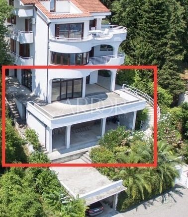 – Stanovanje 180 m2 v pritličju – hodnik, dve spalnici, kopalnica, kuhinja, dnevna soba ter balkon in dve veliki terasi s čudovitim panoramskim pogledom na celoten Kvarner,