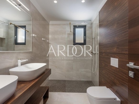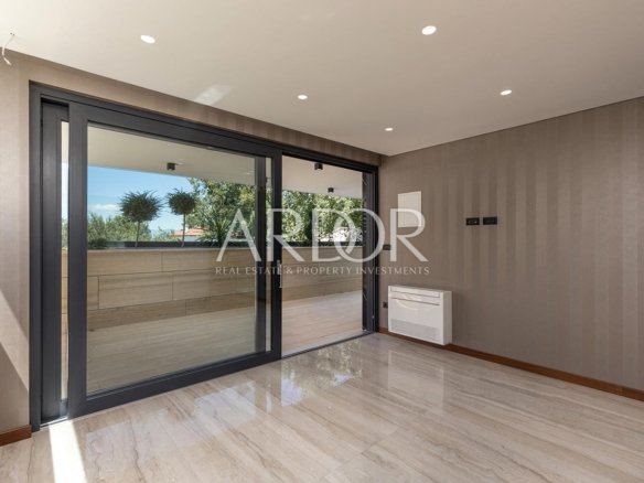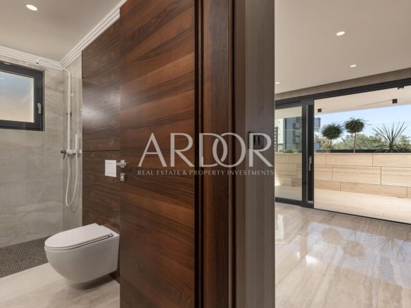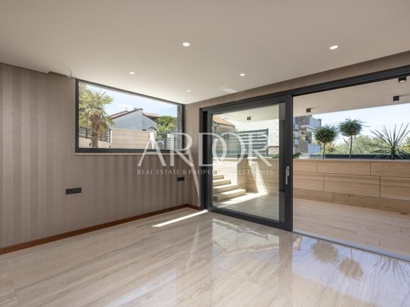 Dodatni naglasci uključuju vanjsku stolariju s velikim podiznim i kliznim stijenama, podove od keramike, vanjska i unutarnja vrata Dierre, te vanjsku fasadu izgrađenu od ventiliranog rimskog kamena travertina. Stan uključuje dva osigurana vanjska parkirna mjesta s punjačem za električni automobil.