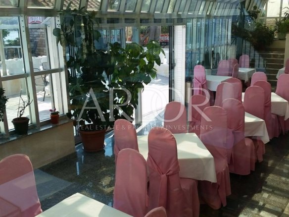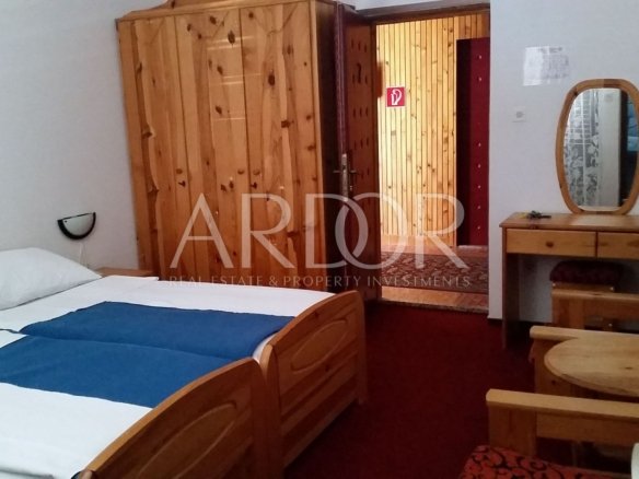 On the ground floor there is a restaurant with kitchen and toilet (for staff). The restaurant part is indoors and on the indoor terrace, it also has a toilet for restaurant guests. Furthermore, on the ground floor there are 4 storage rooms for all needs of restaurants and hotels, as well as a boiler room and a hunting room.