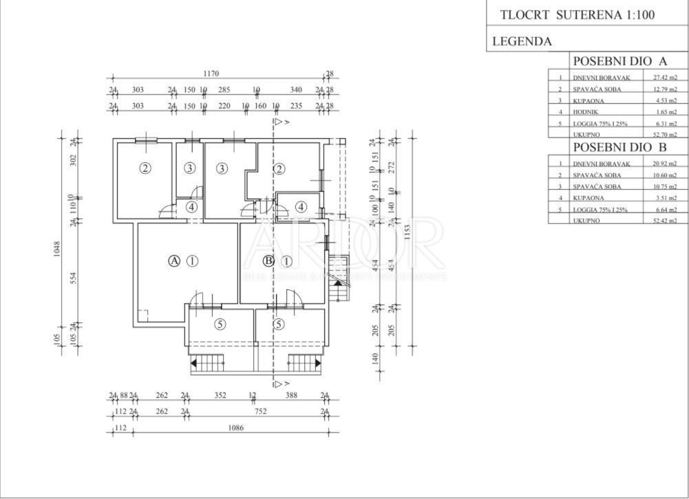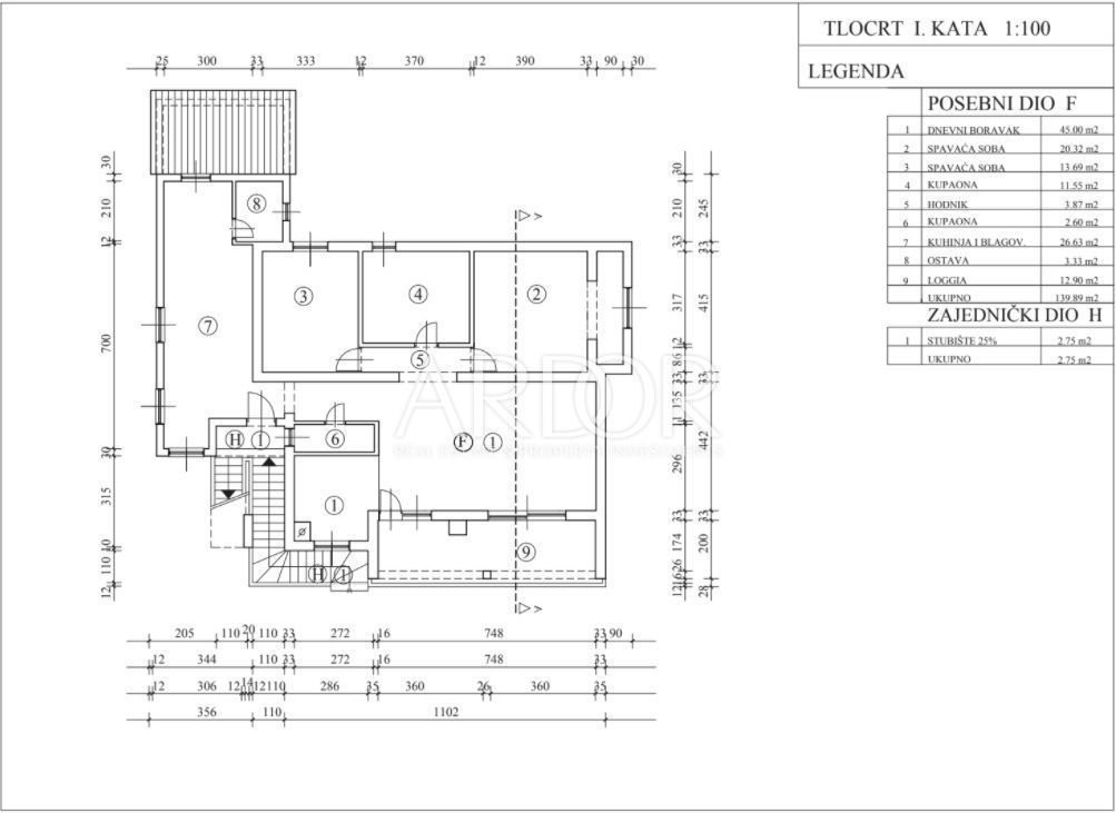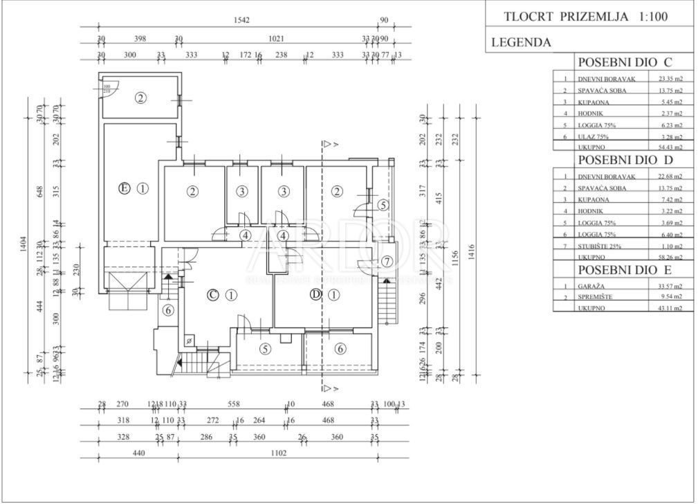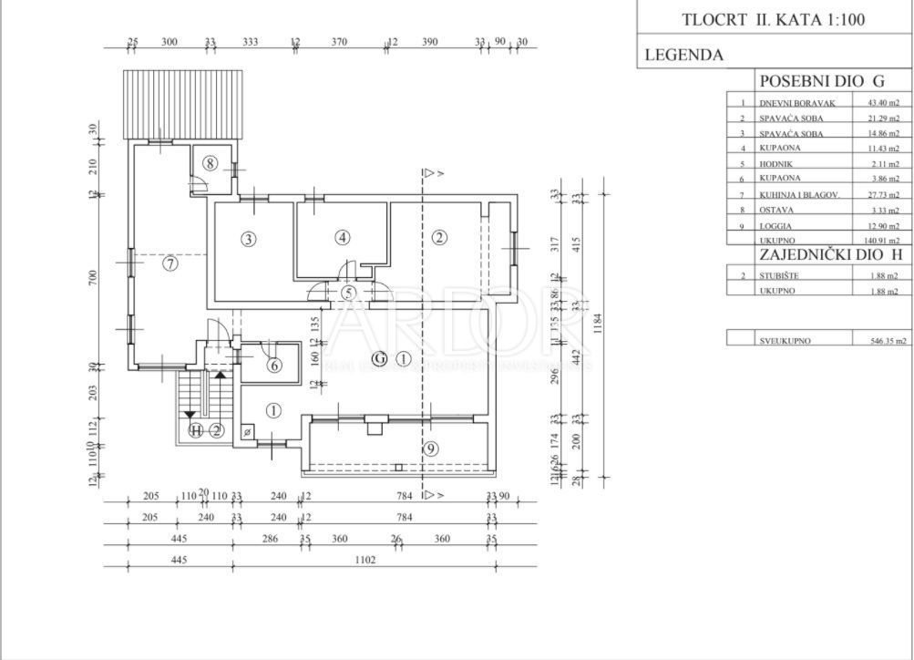 m2 and the land plot of 1.160 m2. On the ground floor there is an entrance area, an anteroom, a