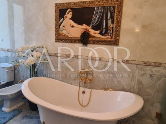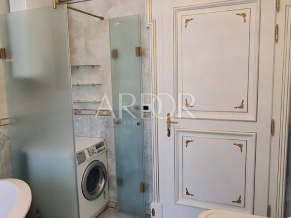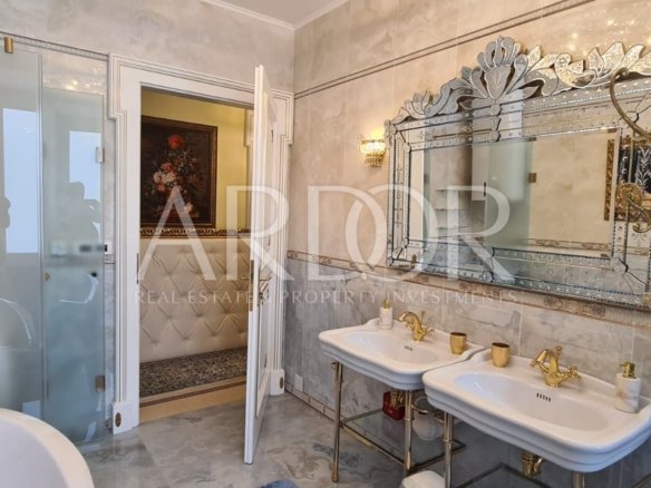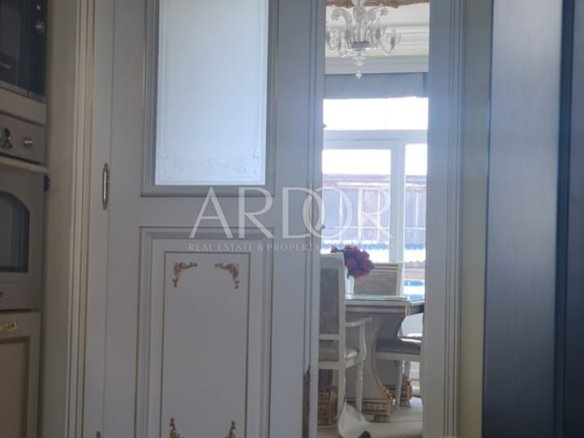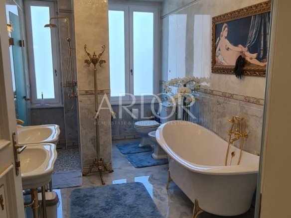 Nalazi se u zgradi sa liftom, te ograđenim parkingom rezerviranim za stanare. Stan je potpuno renoviran, opremljen vrhunskim talijanskim namještajem izrađenim po mjeri, Murano staklom, stropovi su visoki preko 3 m, ukrašeni ručno rađenim štukaturama, te opremljen svim kućanskim aparatima vrhunske kvalitete.