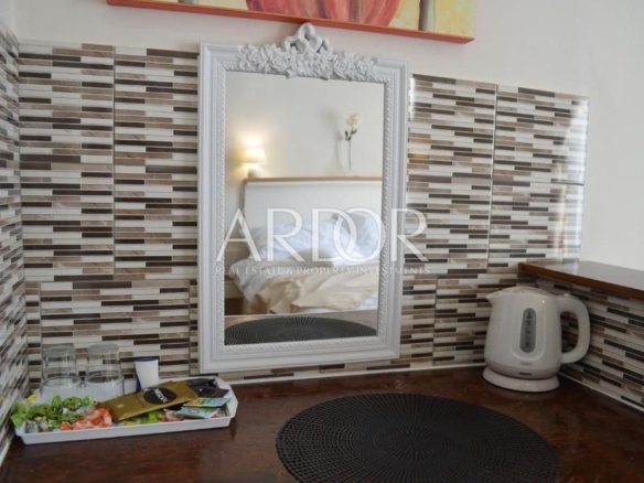 Apartmani su uređeni po principu da svaki od njih posjeduje vlastitu kupaonu i čajnu kuhinju, bračni krevet te mogućnost pomoćnog ležaja koji je radi visine stropa napravljen kao galerija.