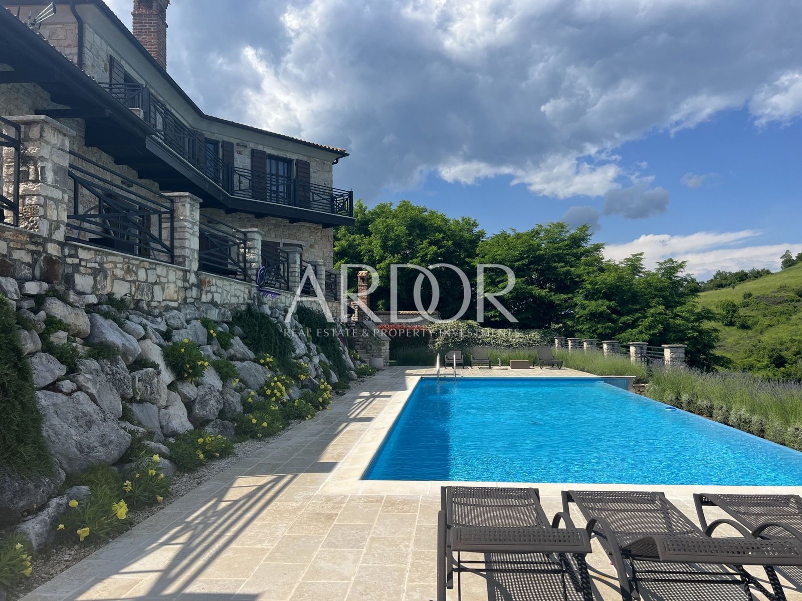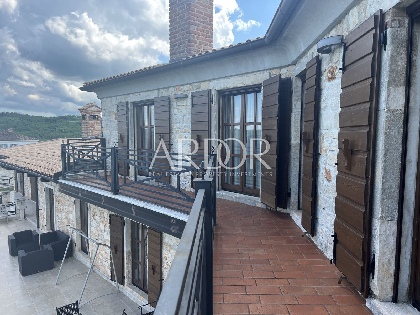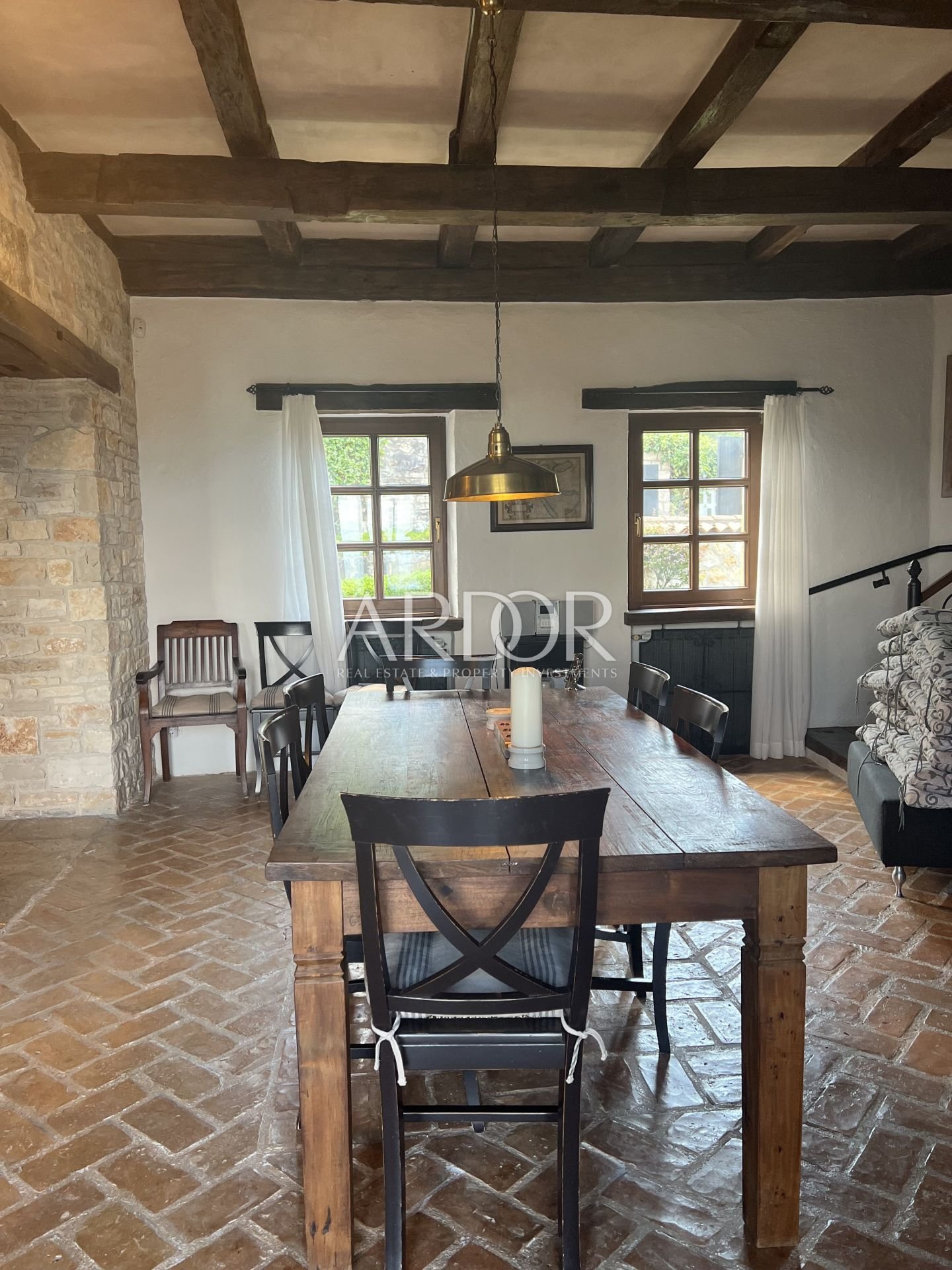 Pred vilo so tri pokrita parkirna mesta. Ta čudovita vila združuje vse elemente za luksuzne počitnice ali mirno življenje. Vila je kombinacija naravnih materialov, kamna in lesa, ki se odlično združujejo v modernem domu in dajejo občutek udobja. Njegova velikost, lep dizajn, kakovost gradnje, ureditve in opreme zagotavljajo udobje in eleganco bivanja. Odlična lokacija vam poleg lepote in vsebine omogoča doživetje vseh čarov notranjosti Istre – vinorodnega okoliša, bližina znanih vinarjev, restavracij, raznolike gastronomske in vinske ponudbe, bližina kolesarskih stez, le deset minut oddaljen od morja in mestnih središč. Idealen je za ljubitelje narave in aktivnih počitnic, v bližini pa je Motovun in drugi znani turistični kraji, ki ponujajo najrazličnejše vsebine.