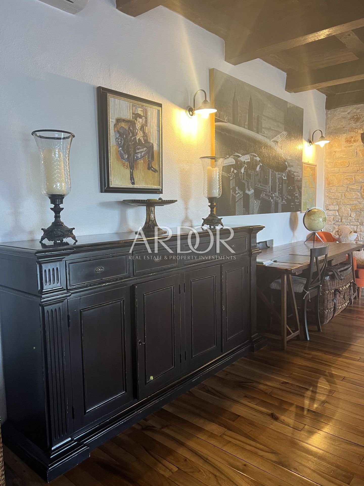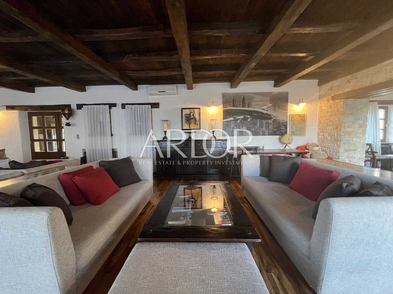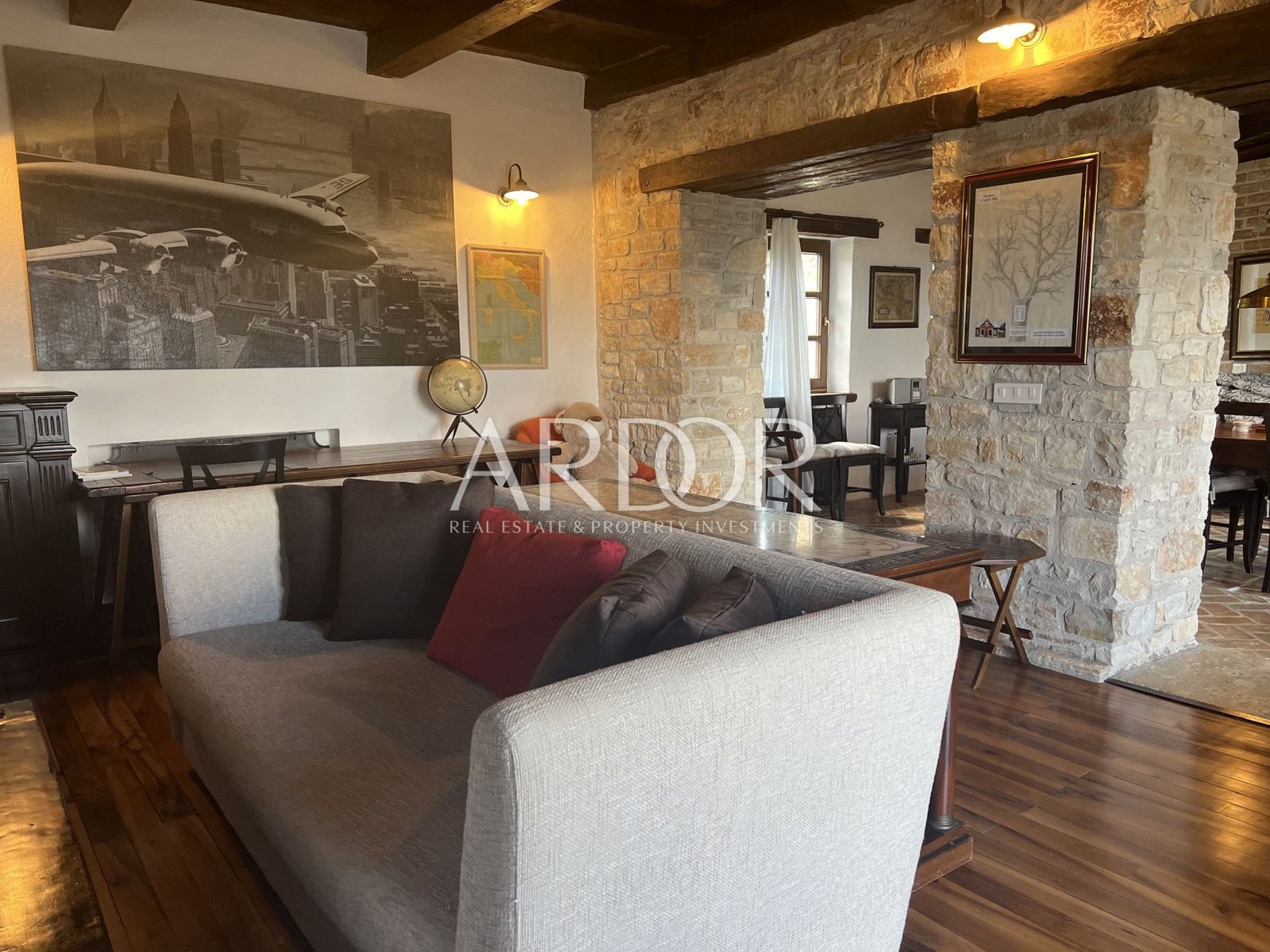 Pred vilo so tri pokrita parkirna mesta. Ta čudovita vila združuje vse elemente za luksuzne počitnice ali mirno življenje. Vila je kombinacija naravnih materialov, kamna in lesa, ki se odlično združujejo v modernem domu in dajejo občutek udobja. Njegova velikost, lep dizajn, kakovost gradnje, ureditve in opreme zagotavljajo udobje in eleganco bivanja. Odlična lokacija vam poleg lepote in vsebine omogoča doživetje vseh čarov notranjosti Istre – vinorodnega okoliša, bližina znanih vinarjev, restavracij, raznolike gastronomske in vinske ponudbe, bližina kolesarskih stez, le deset minut oddaljen od morja in mestnih središč. Idealen je za ljubitelje narave in aktivnih počitnic, v bližini pa je Motovun in drugi znani turistični kraji, ki ponujajo najrazličnejše vsebine.