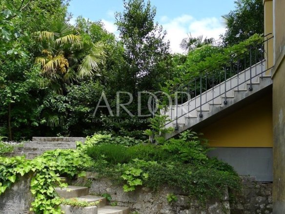 VOLOSKO, a soli cento metri dal mare e dalla famosa passeggiata Lungo Mare, questa imponente villa in stile Liberty ha 450 mq, situata su un terreno di 600 mq, in una splendida pace e tranquillità, immersa nel verde, con vista sul mare.